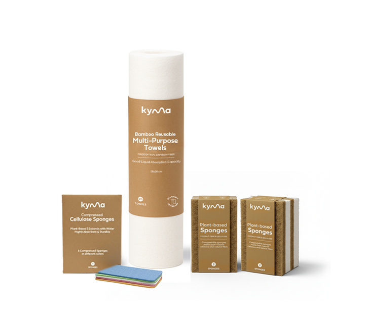 من مناديل البامبو القابلة لإعادة الاستخدام إلى إسفنجات جوز الهند والسليلوز النباتي، كل منتج في هذه المجموعة مصنوع من مواد طبيعية قابلة للتحلل الحيوي — أكثر أمانًا لمنزلك وألطف على كوكبنا.
