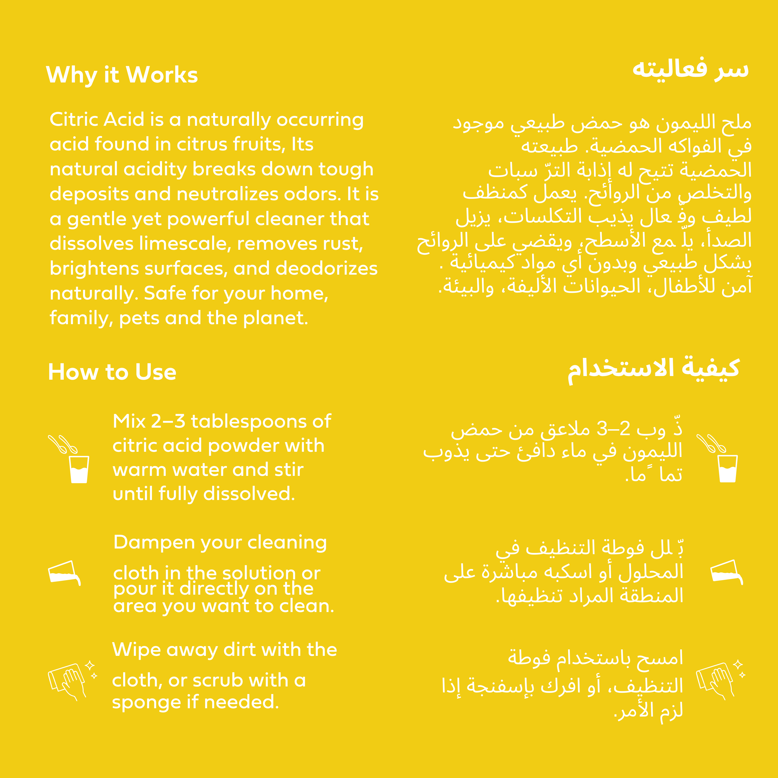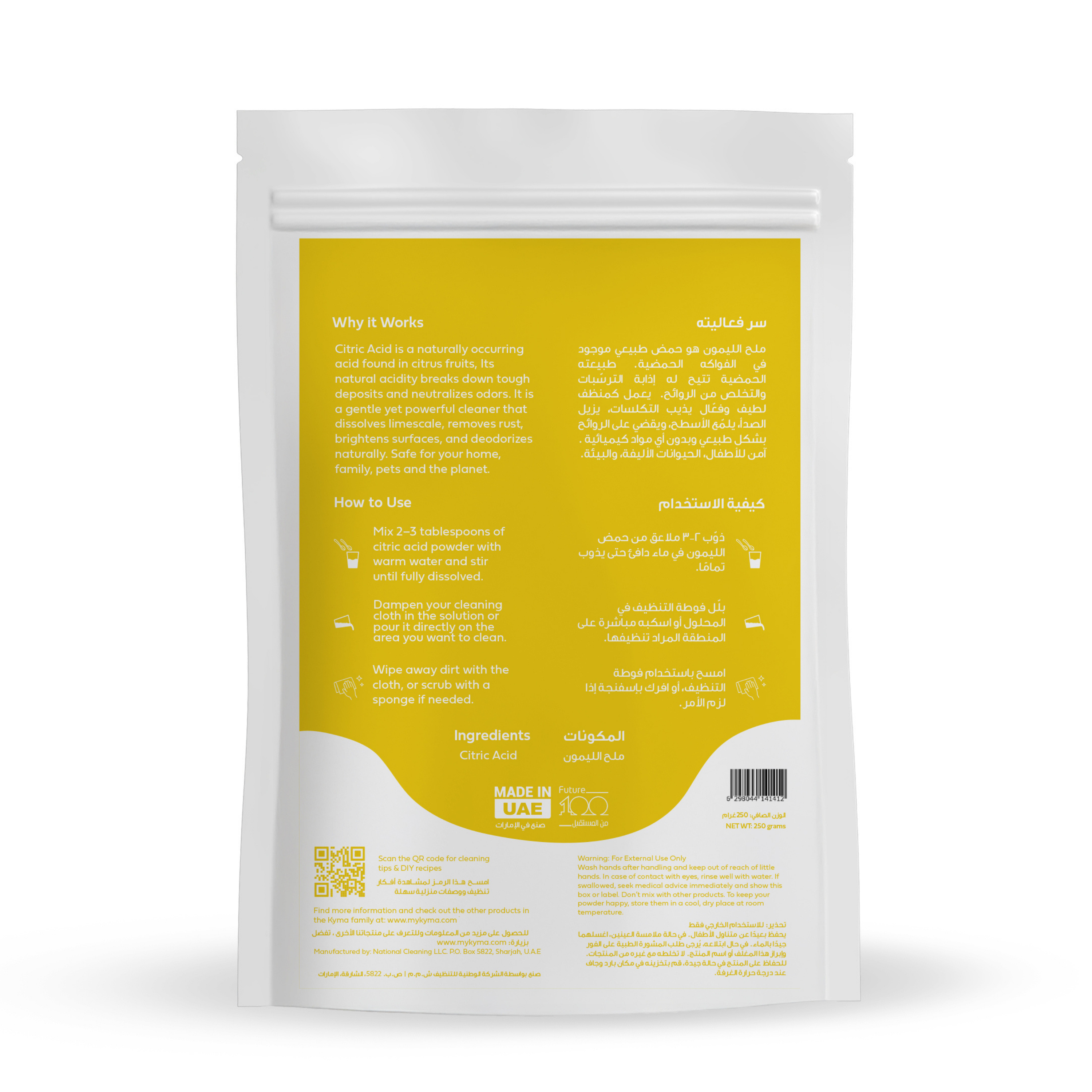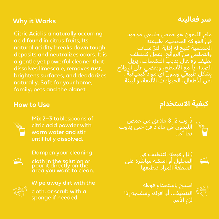 Kyma Citric Acid brings this timeless wisdom back into your routine. Its fine, crystalline particles work like little multitaskers: breaking down limescale, dissolving rust, lifting dirt, and neutralizing odors — all while being safe for your family, pets, and the planet.